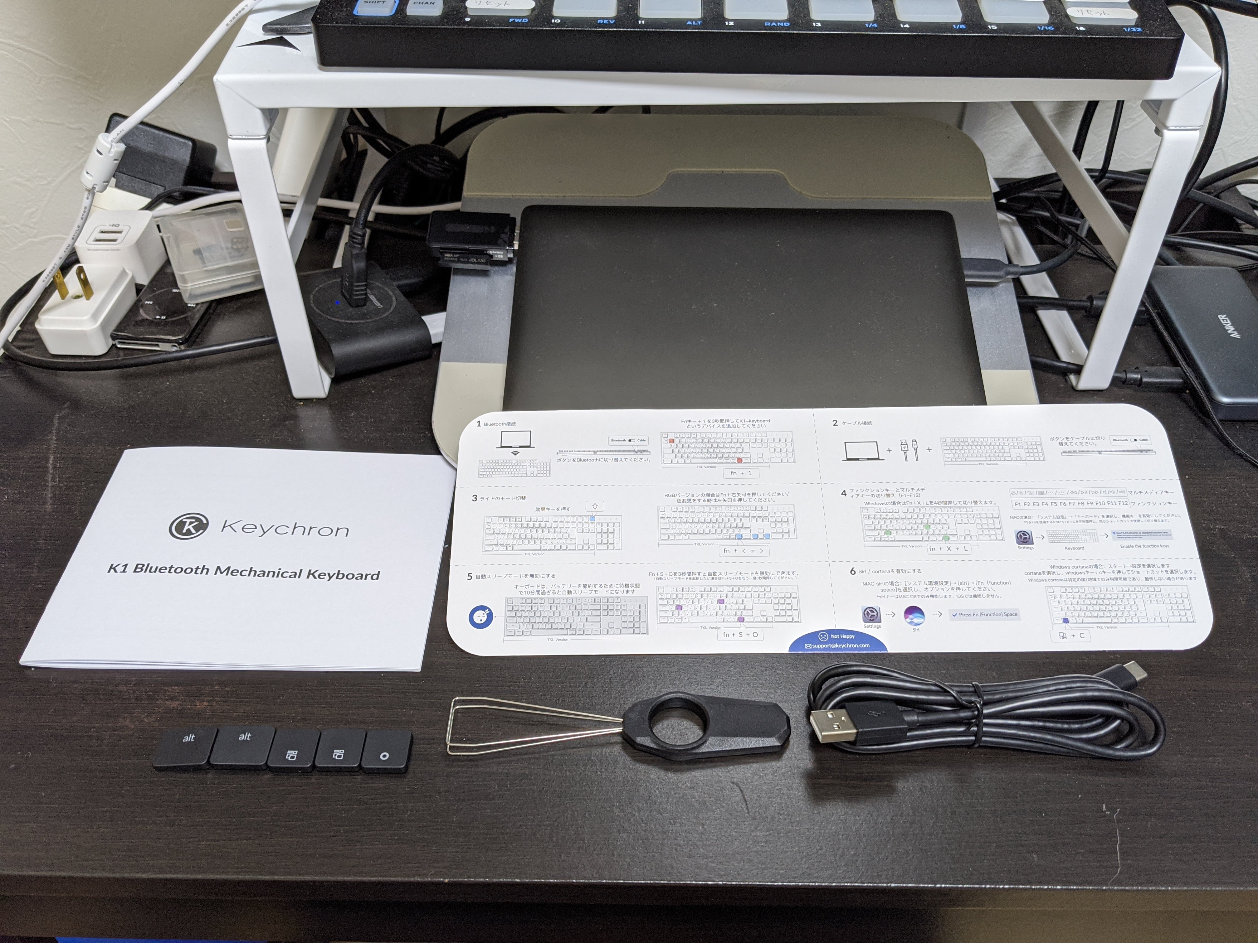 今までパンタグラフ式のキーボードを好んで使っていたのですが、K1はメカニカルで光るのにかな表記有りというので物は試しと出資しておきました。